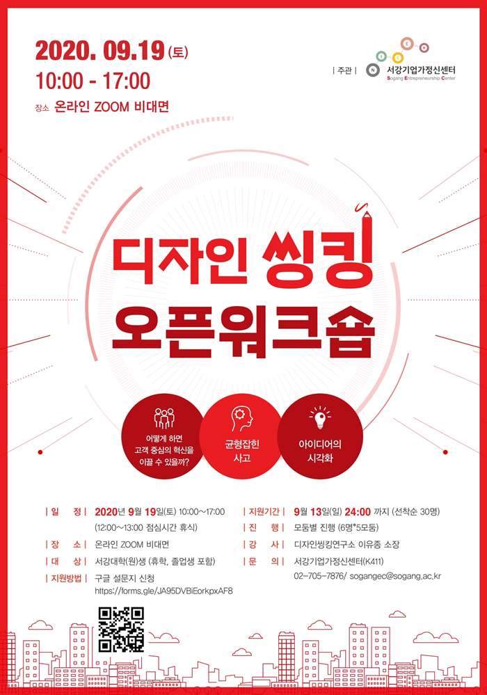 [서강기업가정신센터] 디자인 씽킹 온라인 워크숍(9/19,토) 선착순 30명