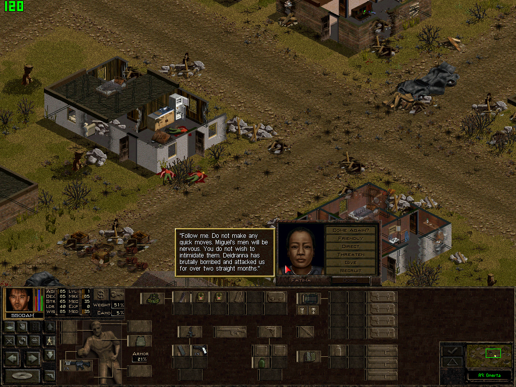 파티마 : 좋아, 그럼 날 따라오도록 해. 빨리 움직이지 마. 미구엘의 병사들은 극도로 예민하니까. 당신들은 미구엘의 병사들을 자극하고 싶진