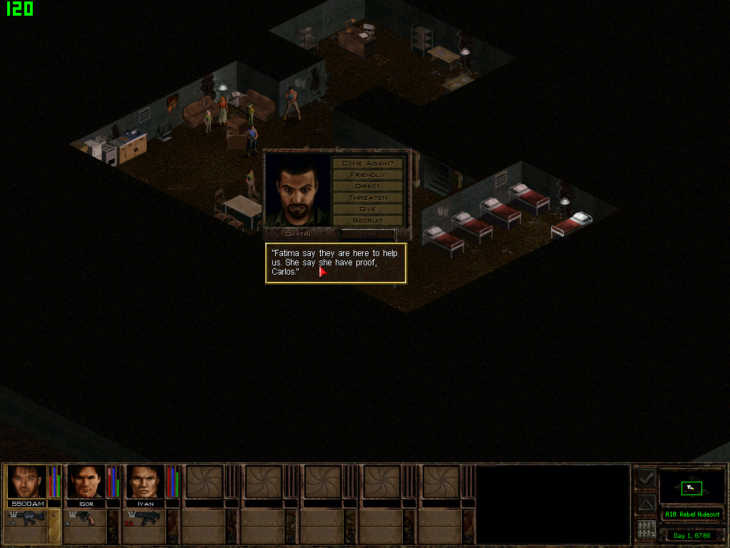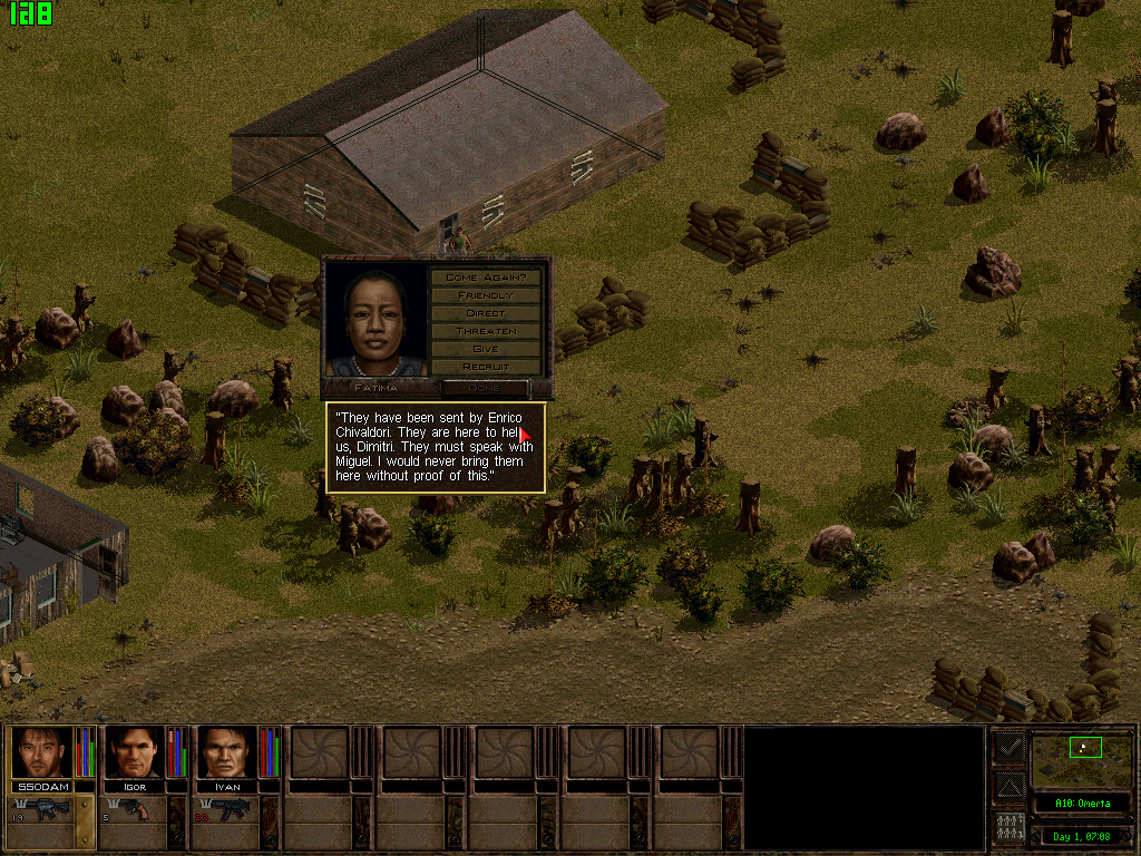 파티마 : 이 사람들은 엔리코 치발도리가 부른 사람들이야. 이 사람들은 우릴 돕기 위해 온 거라고 드미트리, 이 사람들은 미구엘이랑 얘기 해봐