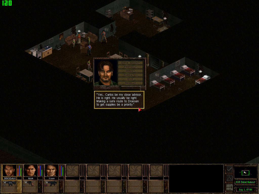 미구엘 : 그래.. 카를로스는 내 충실한 조언자요. 그는 대부분 정확한 편이지. 보급품을 얻기 위해 드라센까지의 경로를 확보하는 것이 우리의