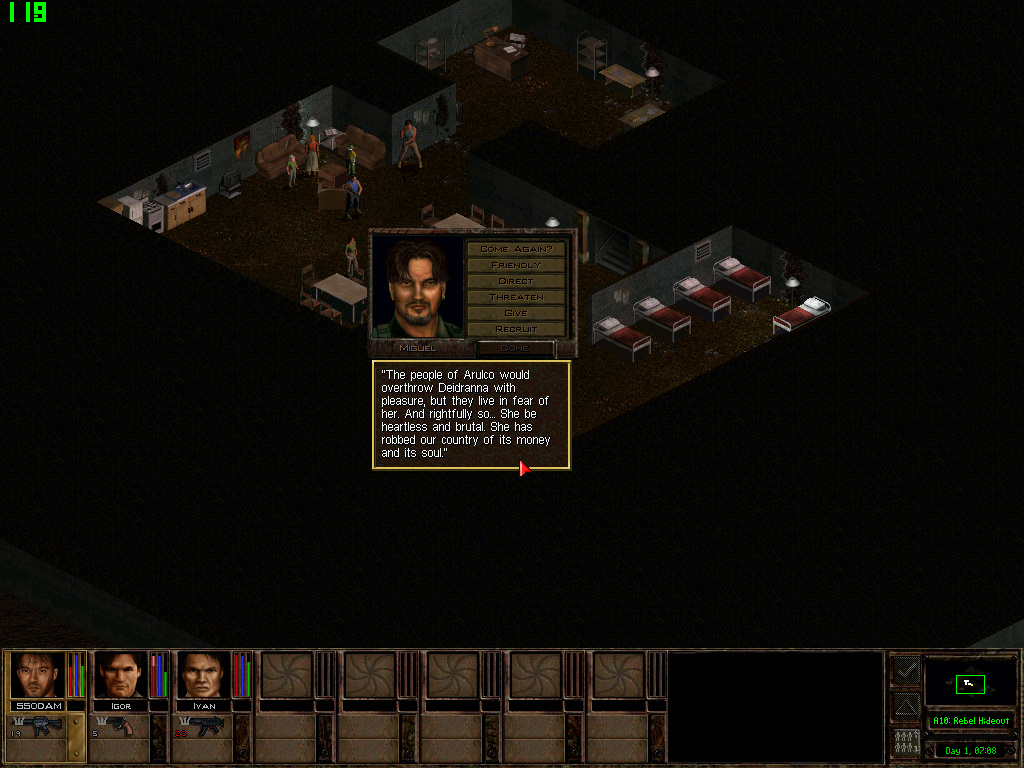 미구엘 : 반란군과 아룰코의 국민들을 대표하여, 당신들을 환영하오. 우리는 당신들의 도움을 기다리고 있었소. 디드리아나는