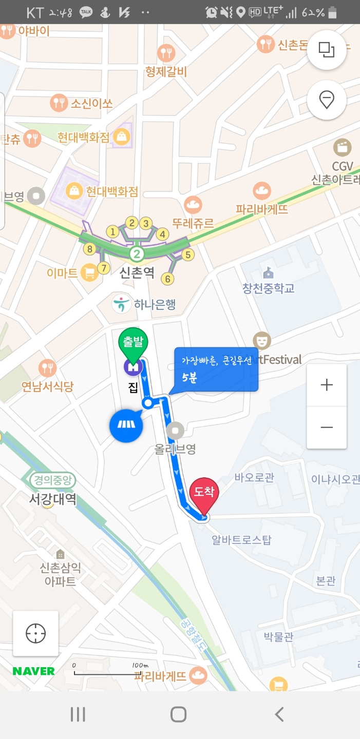 서강대역, 신촌역, 서강대 중간 지점 즈음에 위치한 원룸형 아파트로 K관 기준 딱 강의실에 앉는 데 까지 넉넉히 15분, 서두르면 9분 걸리는 집입니다.