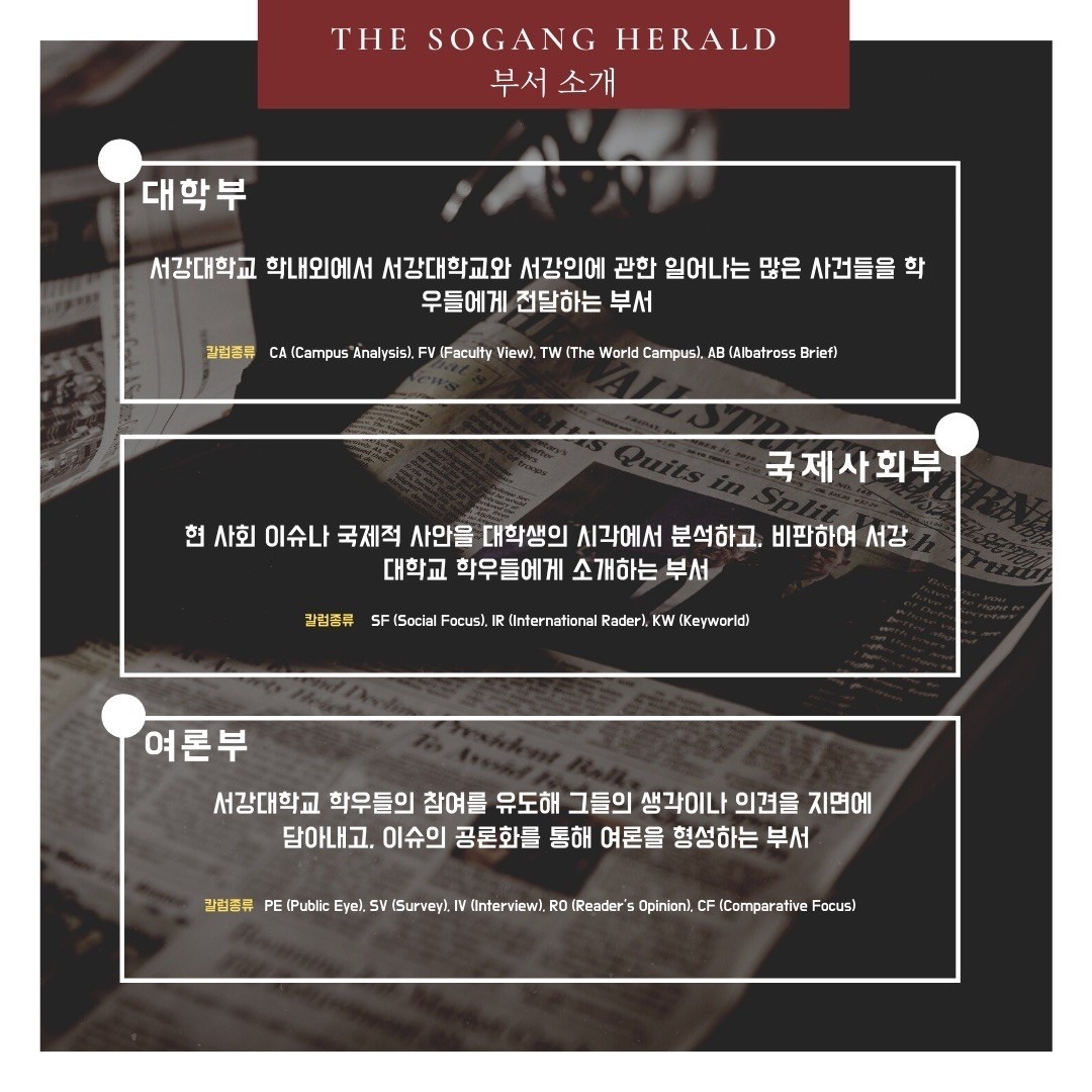 *문의사항: 010-8582-0843 (서강헤럴드 편집장 최진영), herald@sogang.ac.kr, ‘서강헤럴드 The Sogang Herald’ 페이스북 페이지