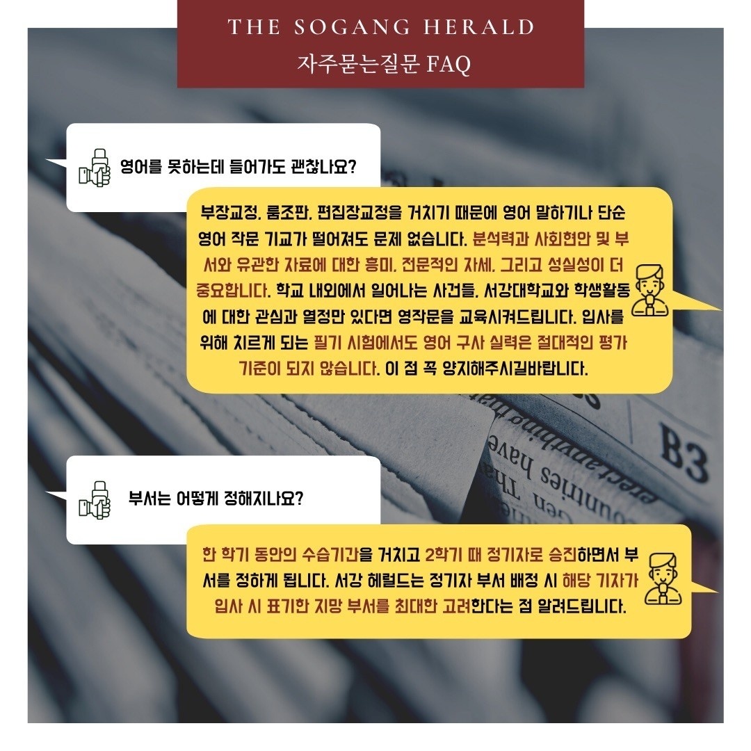 서강대학교 언론사협의체 소속 종합영자언론사 서강헤럴드에서 55기 1차 수습기자를 모집합니다.