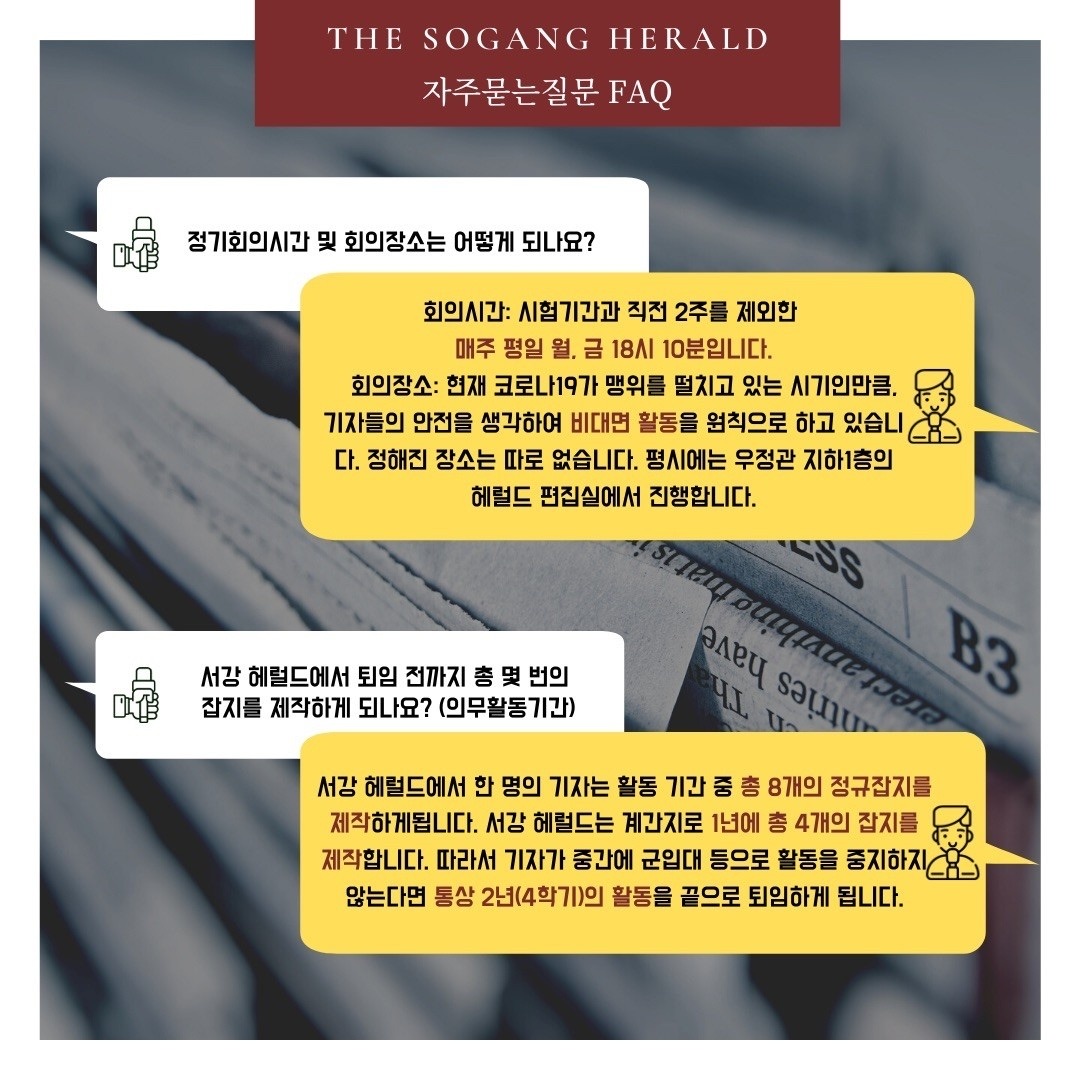 Q. 서강 헤럴드에서 퇴임 전까지 총 몇 번의 잡지를 제작하게 되나요?(의무활동기간)