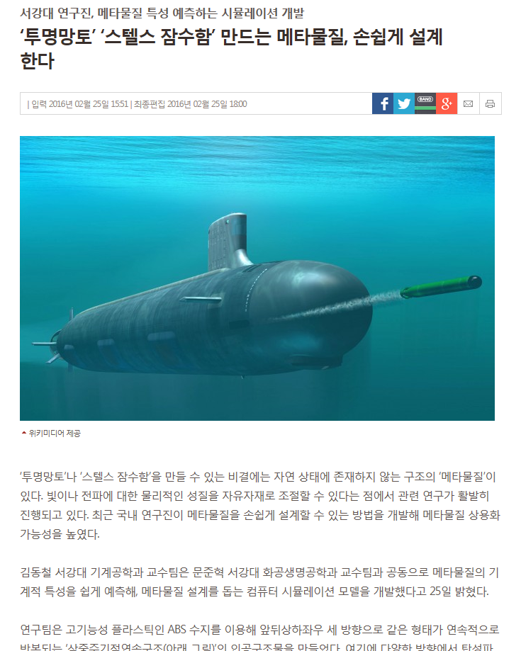김동철 교수는 “새롭게 개발된 메타물질은향후 음향탐지기로 탐지되지 않는 은폐장치,경량화된 방탄재료를위한 높은 효율의 에너지흡수제 등으로 활용되어 방위산업, 항공우주산업,자동차산업 등 다양한 분야에활용될 수있다”고 연구의 의의를 설명했다.
