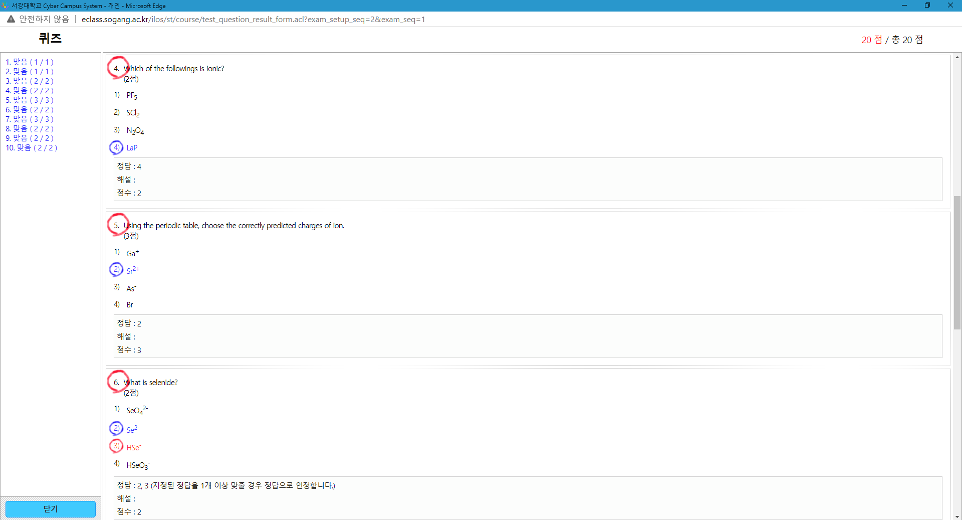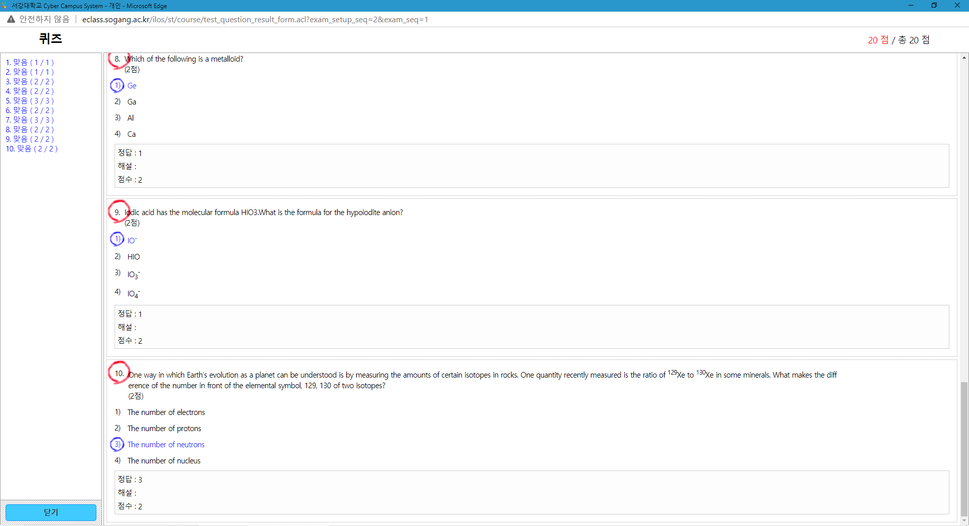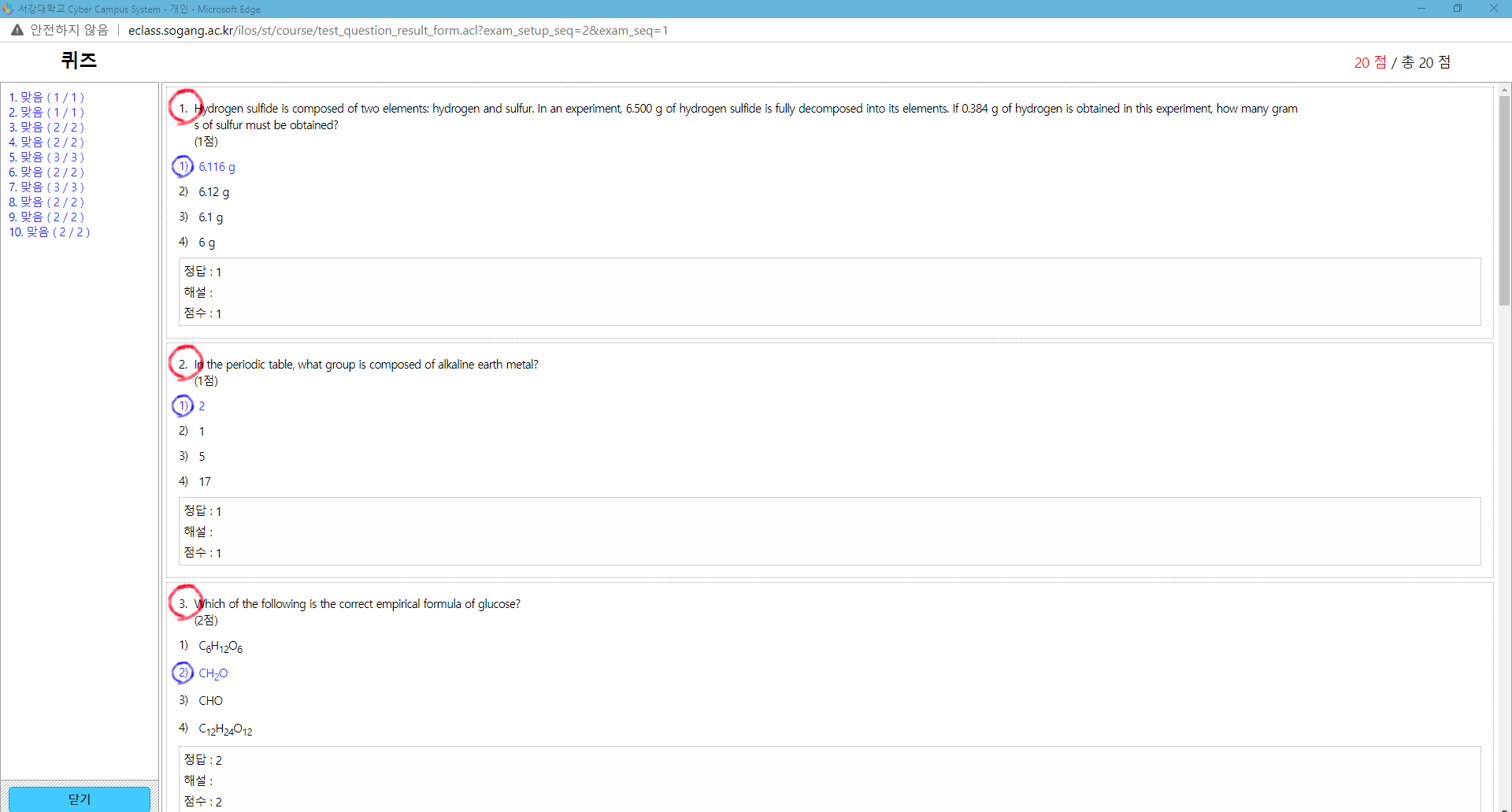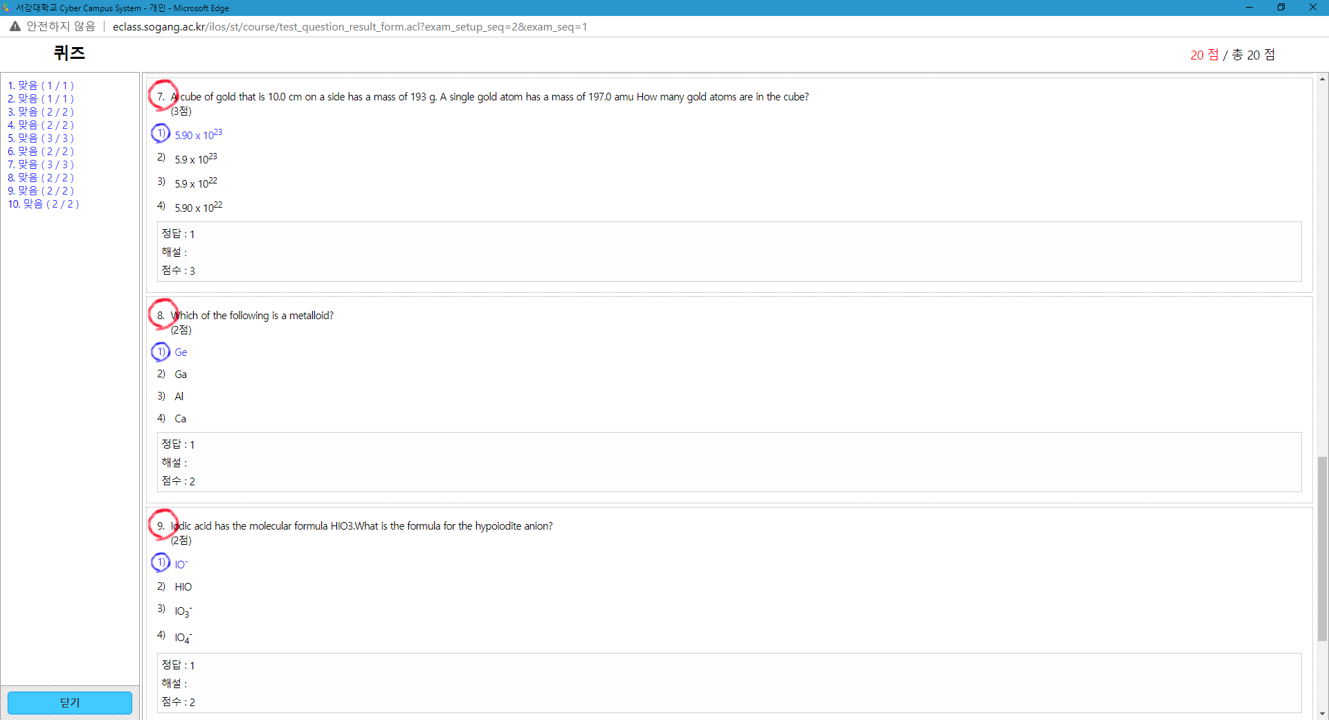 조규봉 교수님/일반화학1/2021 1학기/퀴즈 2주차