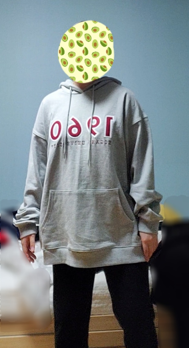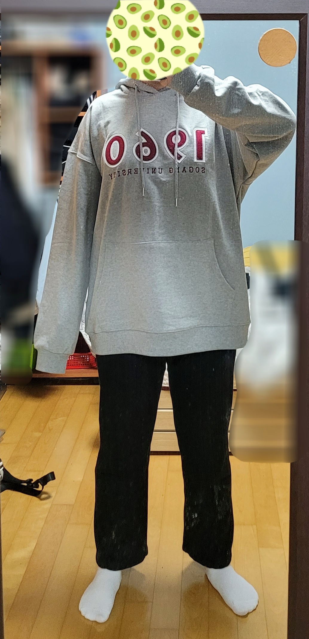 회색은 아예 박시하게 입어야지~ 하고 크게 XL로 질러봤는데 엄청 크더라! 내가 갖고 있는 후드티중에 젤 긴 듯