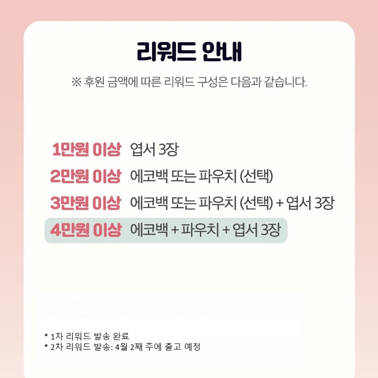 ✔ 후원해 주신 분께는 저희가 직접 제작한 리워드를 보내드립니다.