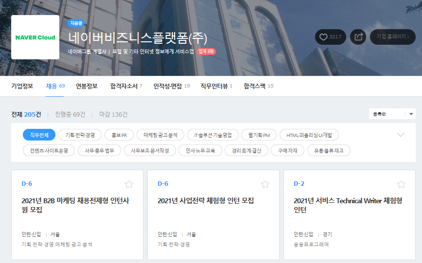 [네이버클라우드] 2021년 채용형/체험형 인턴 채용공고 모음 (~04/12)