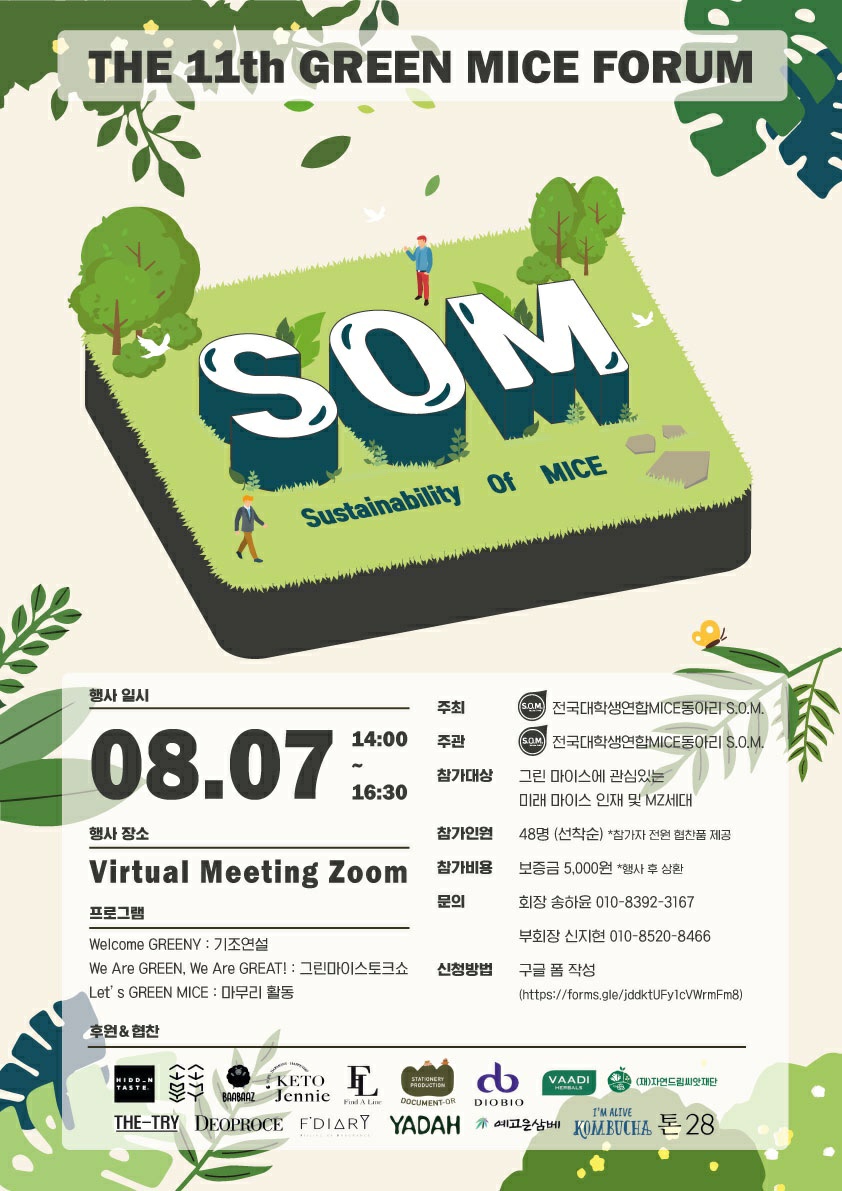 전국대학생연합MICE동아리 S.O.M. 에서 제11회 그린 마이스 포럼 <S.O.M. : Sustainability Of MICE>를 개최합니다!