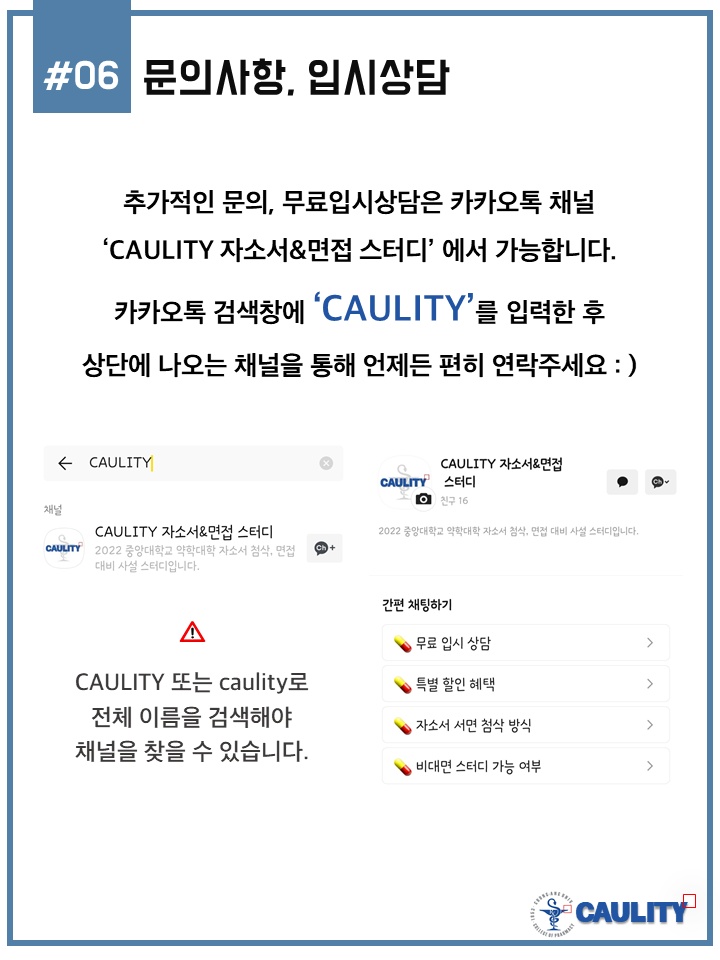 - 링크 클릭 시 CAULITY 채널로 바로 연결됩니다 >> http://pf.kakao.com/_xaxhMFs/chat