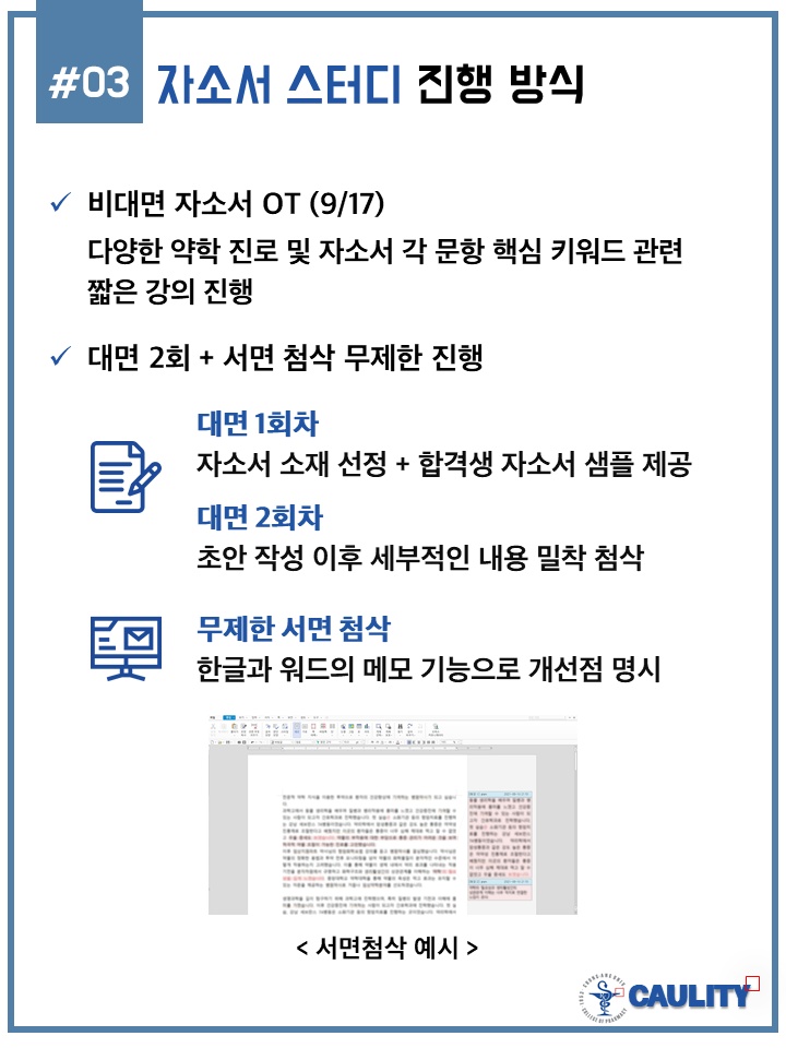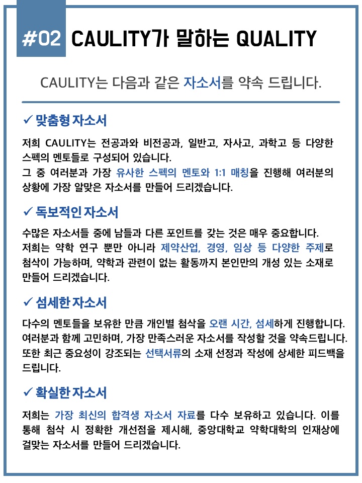 ☆중앙대학교 약학대학 자소서 & 면접 스터디 CAULITY☆