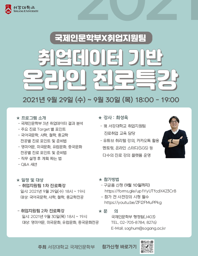 ※ 문의: 국제인문학부 행정팀(soghum@sogang.ac.kr, 02-705-8784, 8276)