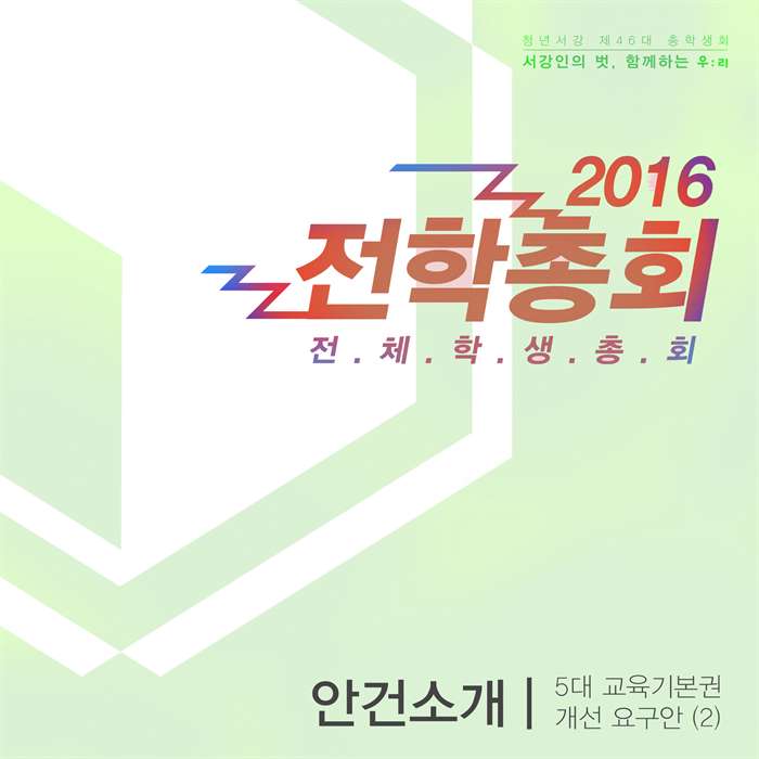 안녕하세요. 청년서강 제 46대 총학생회 "우:리"입니다.