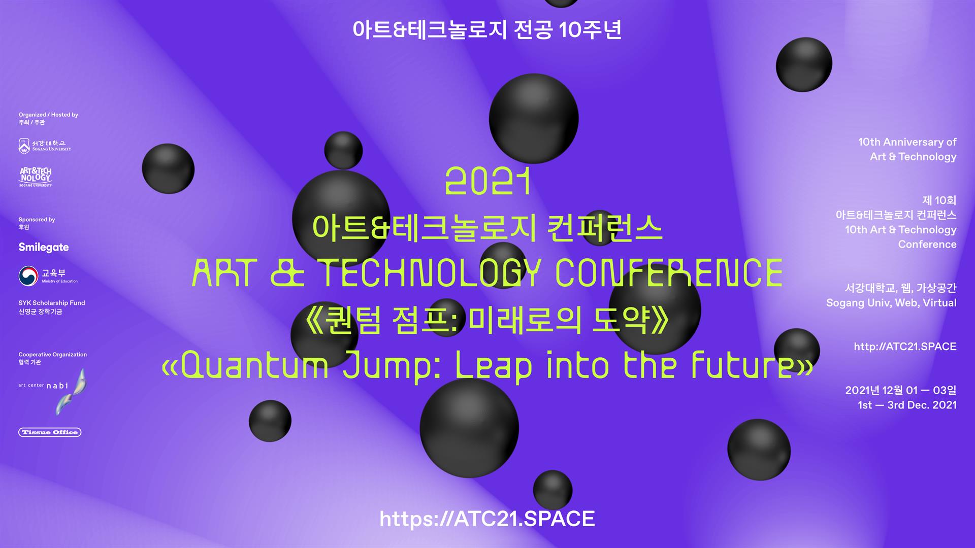 2021년 12월, 서강대학교 아트&테크놀로지 전공 설립 및 컨퍼런스 개최 10주년을 맞아 조금 특별한 컨퍼런스 ATC21을 개최합니다.