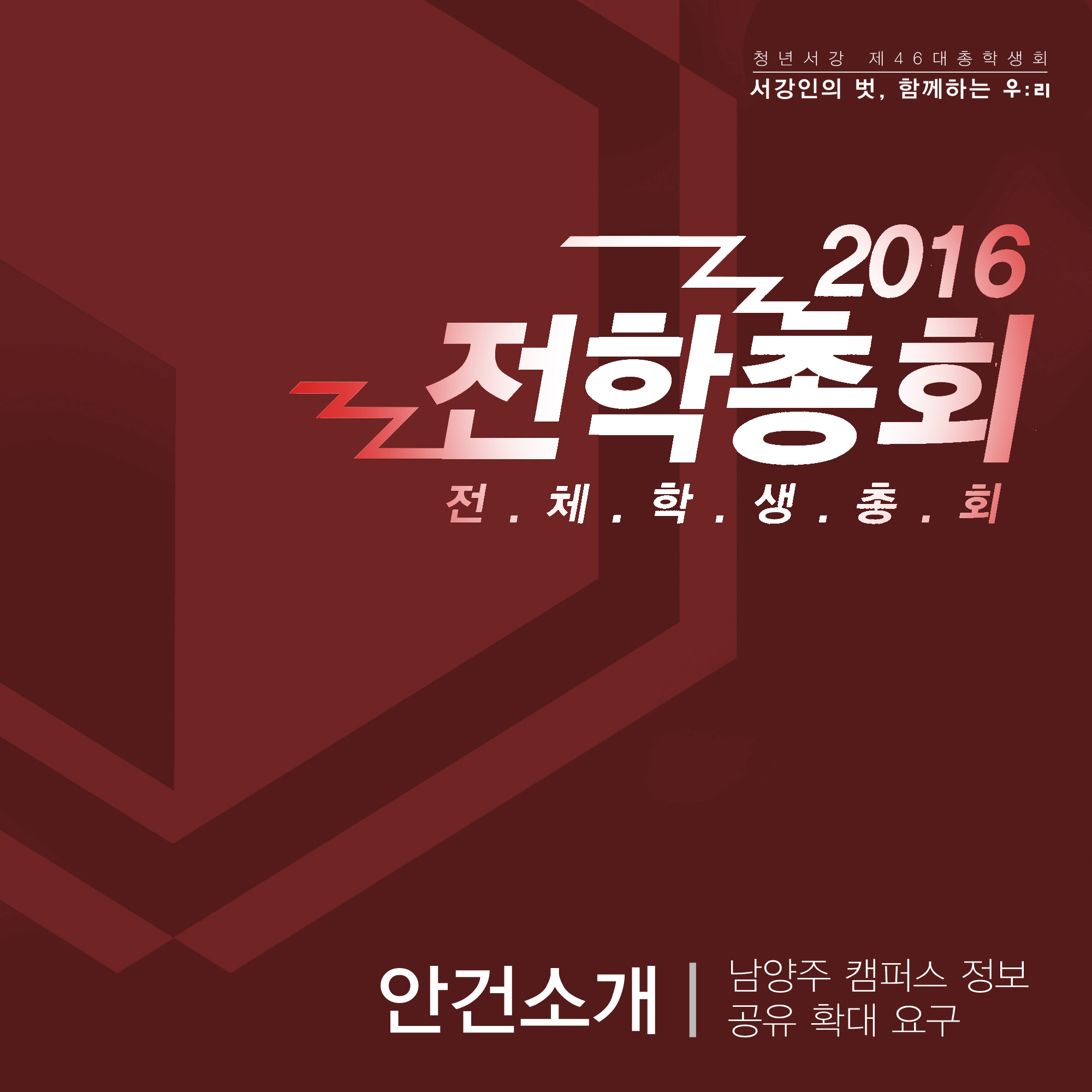 안녕하세요. 청년서강 제 46대 총학생회 "우:리"입니다.