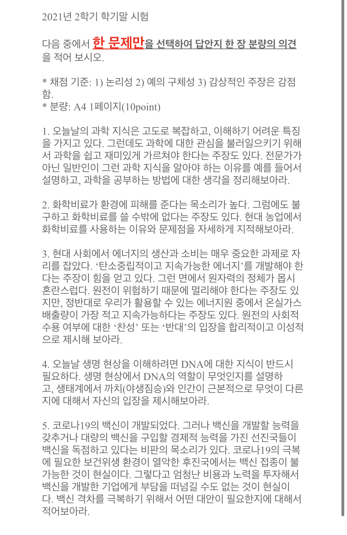이덕환 교수님 / 자연과인간 / 2021-2학기 / 기말고사