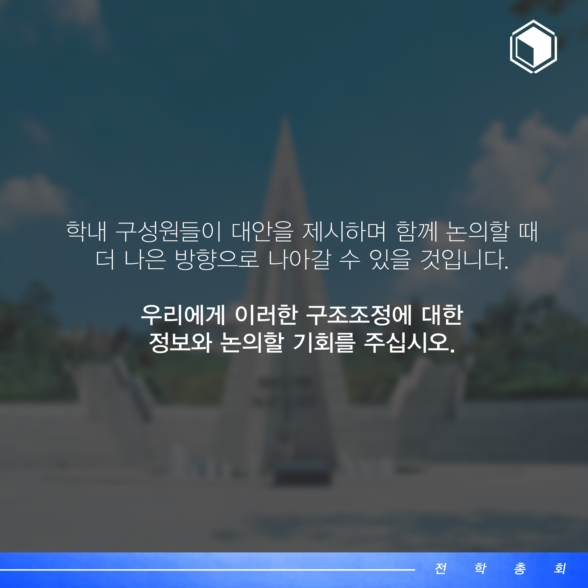마지막편은 5번째 안건, 대학 구조조정 반대에 관한 내용입니다.