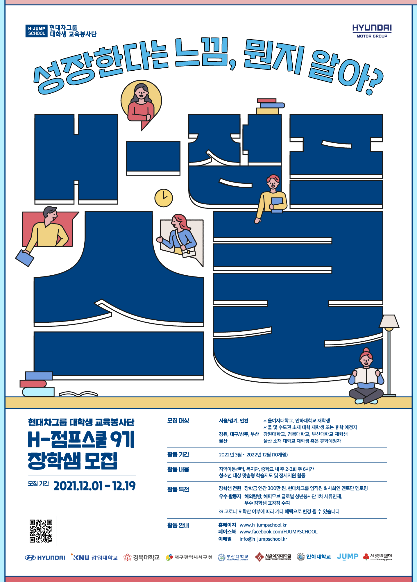 (장학금有) 현대차그룹 대학생 교육봉사단 H-점프스쿨 9기 장학샘 모집(~12/22 마감기간)