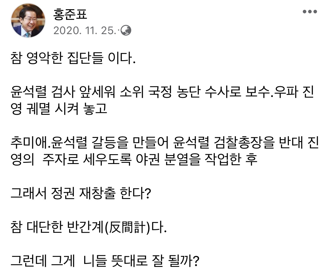 역시 맞말만 하는 홍준표옹