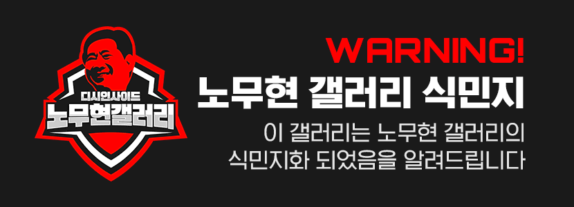 귀하의 게시판은 노무현 갤러리의 식민지화 되었음을 알립니다. 다음과 같은 게시물은 삭제나 이동조치 됩니다.
