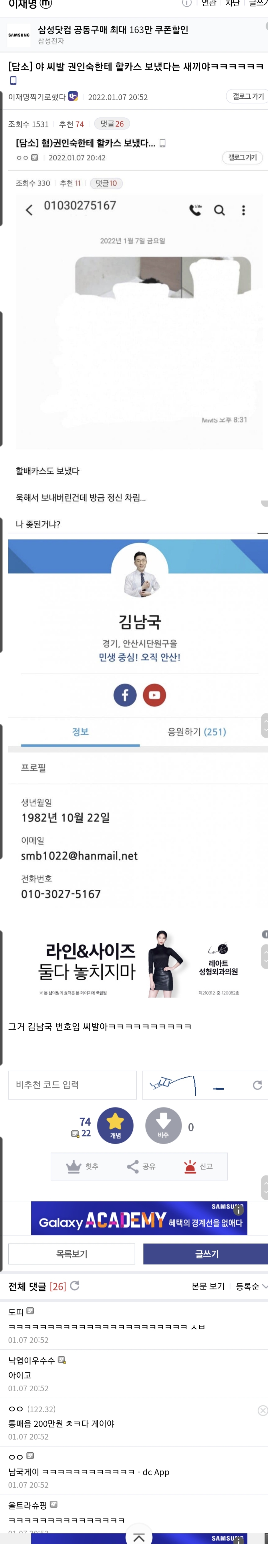 이재명 갤러리에서 김남국한테 할카스보냄ㅋㅋ