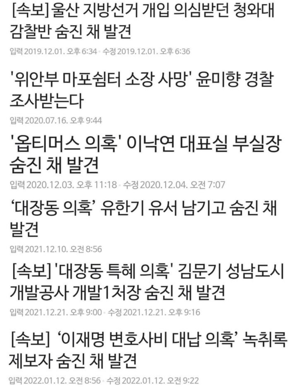 근 몇 년 정부여당의 악재에 관련된 핵심인물들이 '우연히' 유명을 달리하는 일이 벌어짐