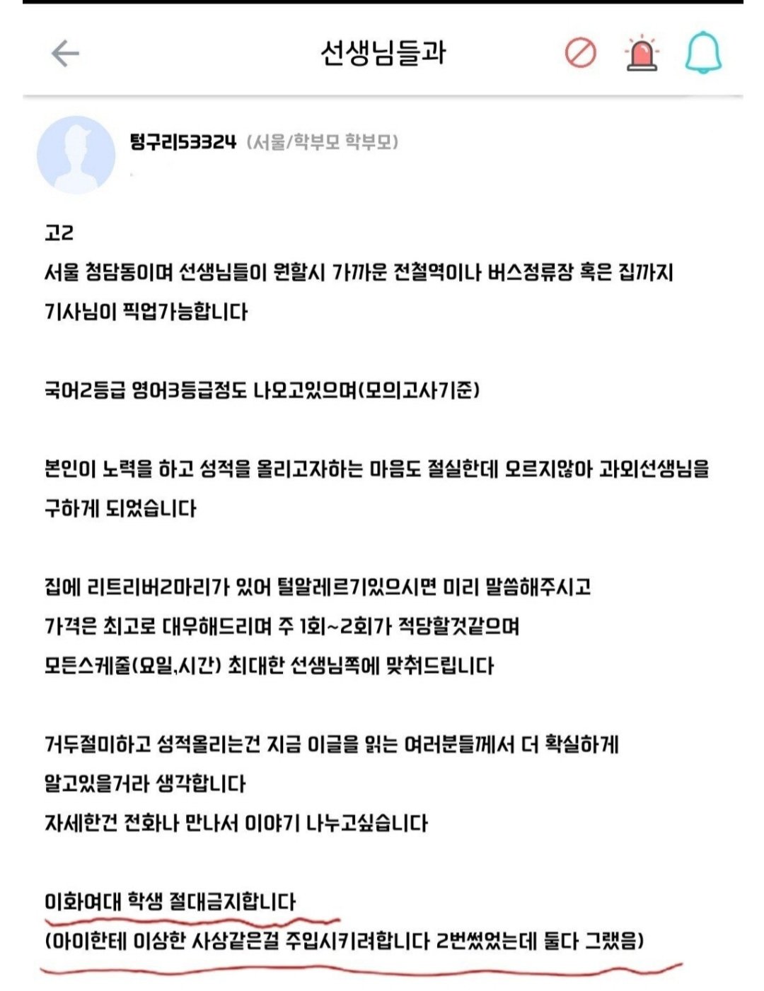 애초에 이대한테 과외를 왜 받냐 ㅋㅋ