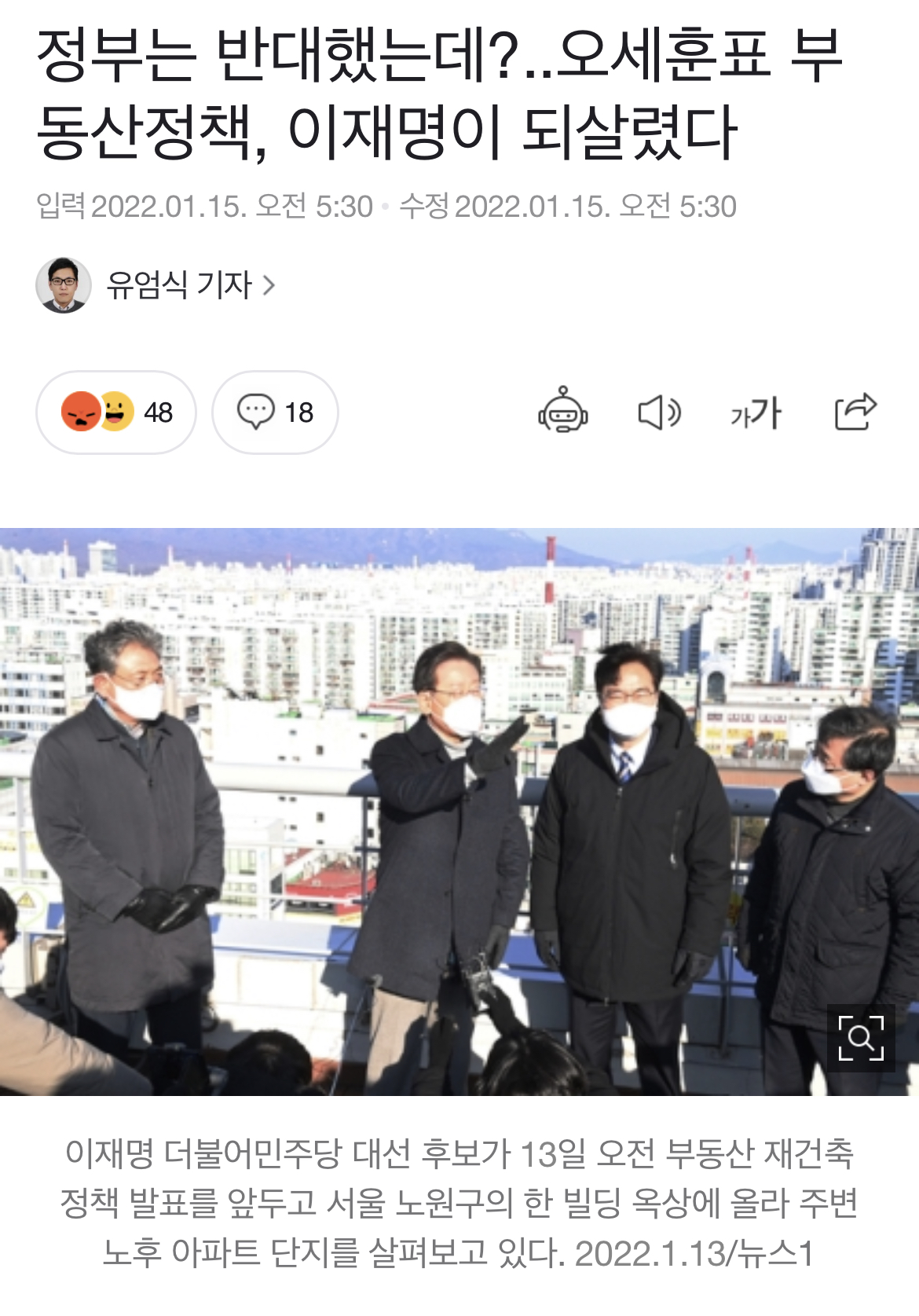 이재명이 부동산 정책 코드를 오세훈이랑 맞춰버리네