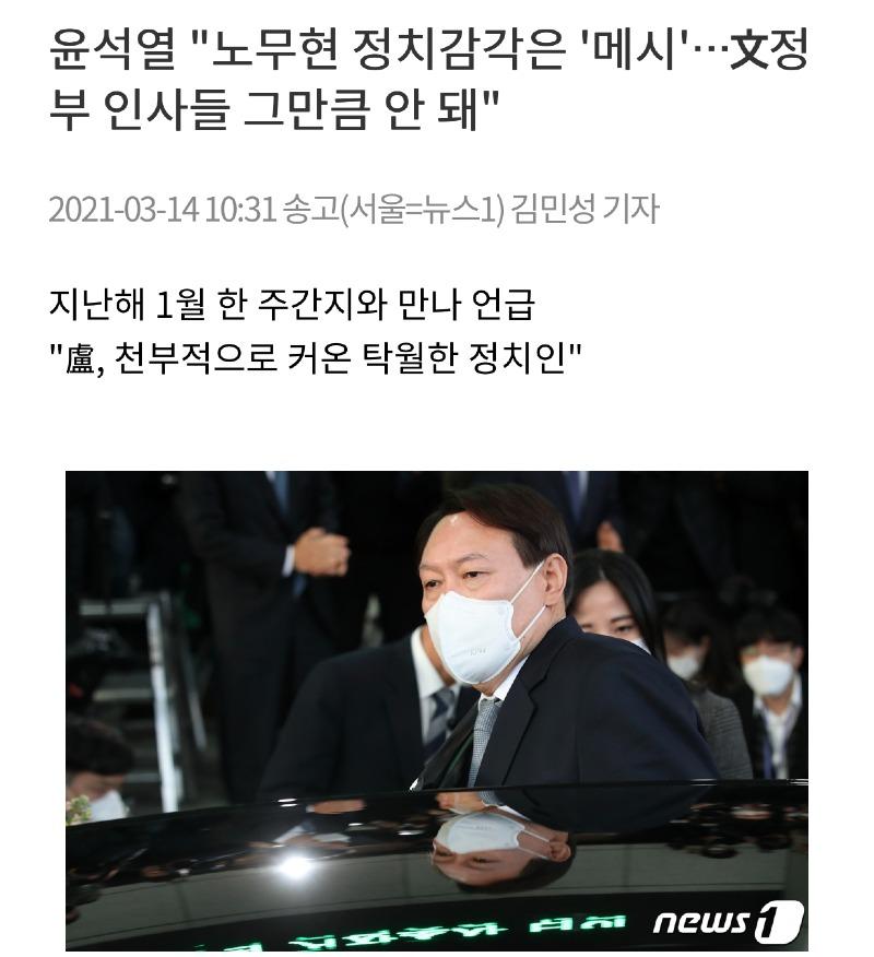 노통을 쭉 지지해왔고 지난 대선 경선에서도 안희정을 지지했던 중도좌파로서 윤석열이 다시 보이네요...