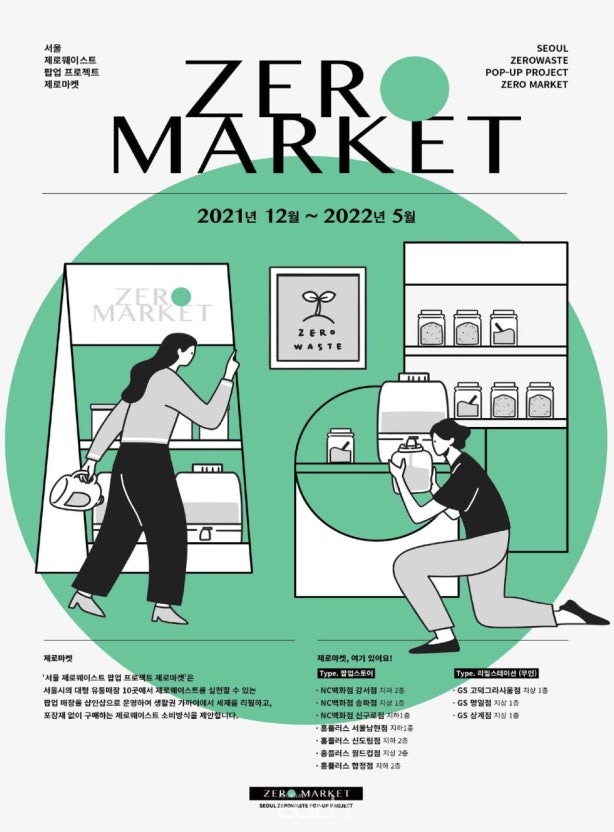 이번에 서울시에서 대형마트나 백화점 10곳에 제로웨이스트샵을 5개월 입점시키는 프로젝트를 한다고 해요.