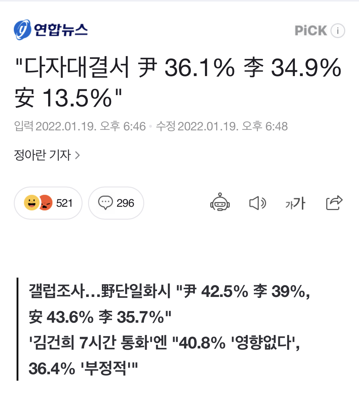 연합뉴스 갤럽 안 봄 민주당파
