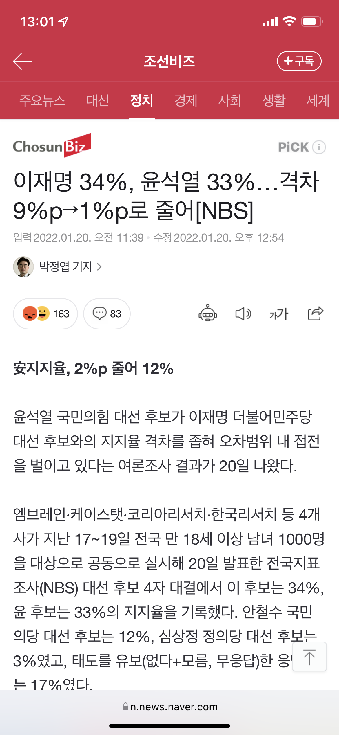 전국지표조사도 맞고 찢지지용 맥심도 맞음.저번주에도 딴데 다 윤석열이 역전이거나 박빙인데 혼자 이재명이 9퍼센트차로 이긴다했던데임