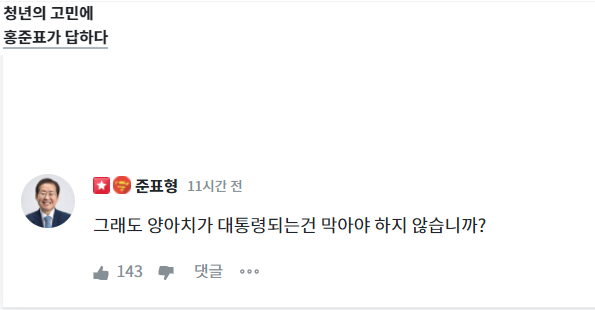 뭔 시동이야 홍준표가 개 욕쳐먹어도 이재명 미는짓은 안했음 그래도