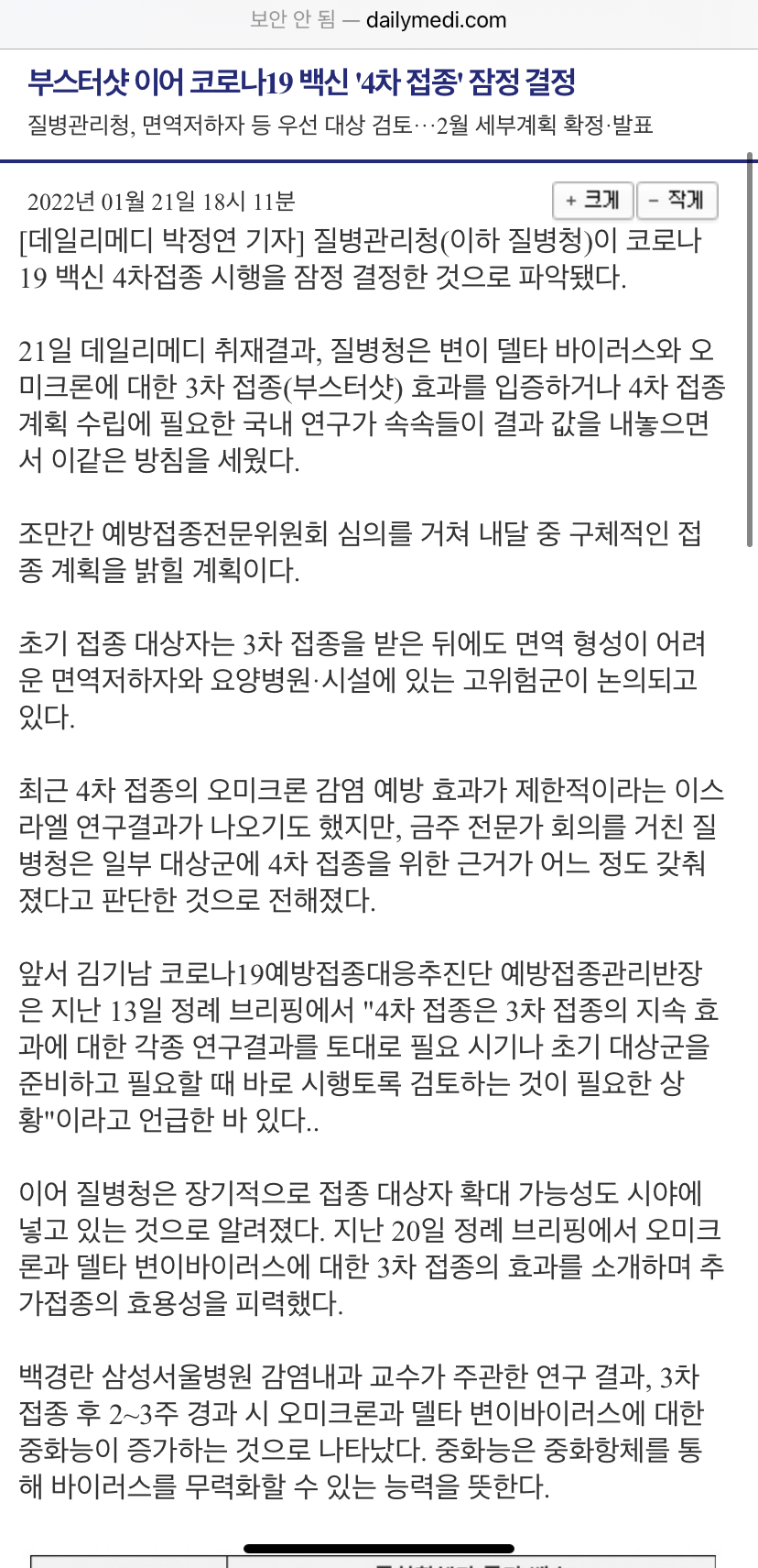 아직 확진자가 계속 나오는거 보면 4차까지는 기본으로 맞아야 예방효과 있을듯 4차 나오자마자 바로들 예약 ㄱ