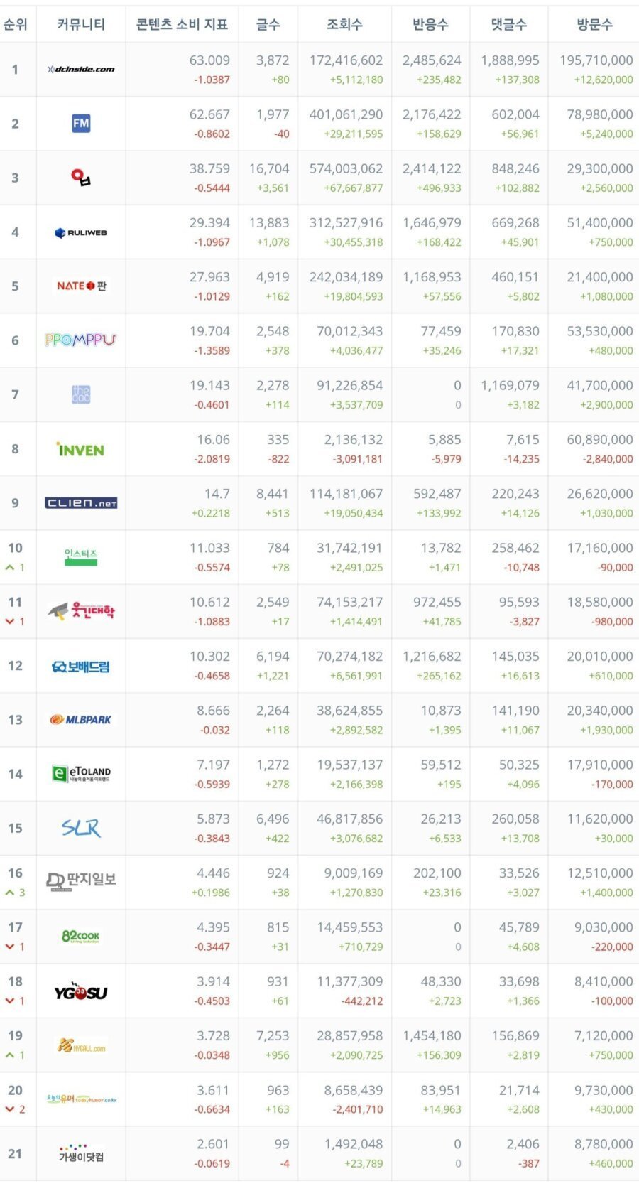 조회수도 1위네. 근데 댓글수에서 밀리는걸 보면 진지빨고 토론한다기보단 걍 똥글 싸지르는 사이트정도가 맞는듯