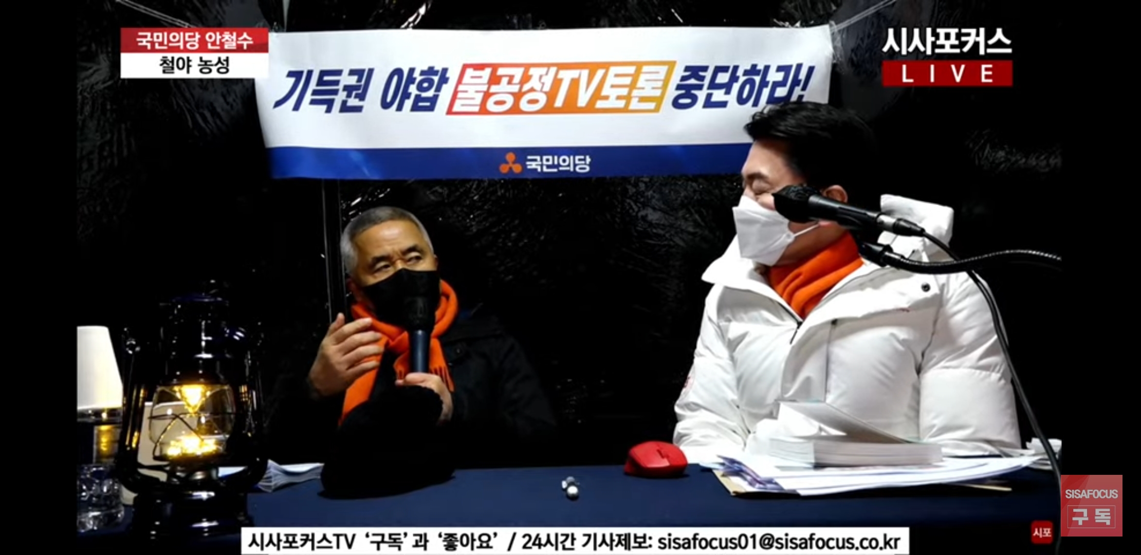 안철수 철야농성 텐트에서 무슨 철학 강의 하는중......