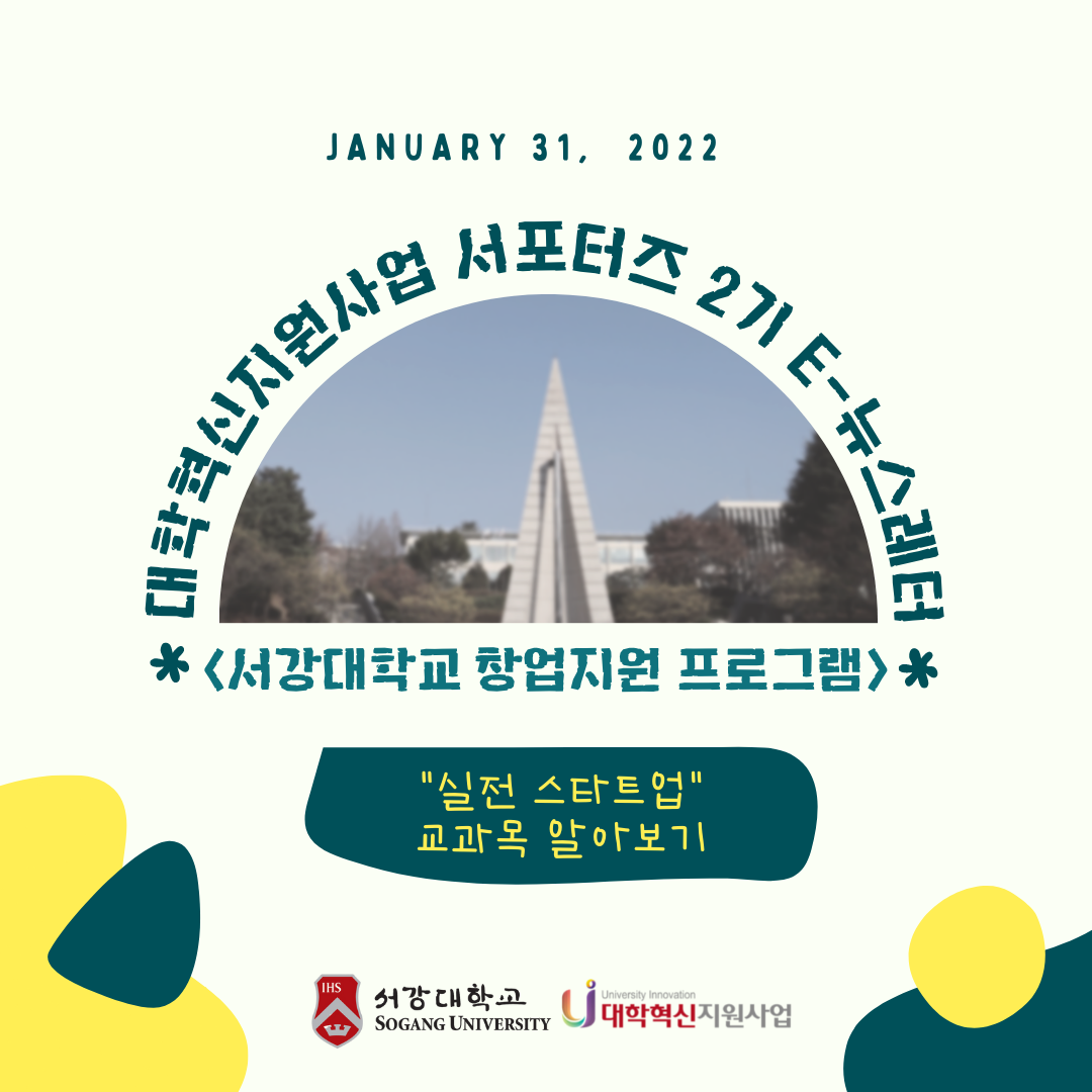 안녕하세요 :) 서강대학교 대학혁신지원사업 서포터즈 2기입니다-! 새학기 수강신청을 준비하고 있을 여러분들께 서강대학교 대학혁신지원사업의 <창업지원 프로그램>으로 운영되고 있는 "실전 스타트업 과목"에 대해 소개하려고 합니다.