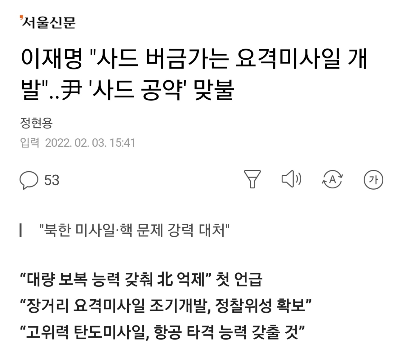 얼마 전에 민주당 의원님들이 킬체인, 사드, 도발징후선제타격 운운하는 건 전쟁광 일베충 대깨윤이라 하셨는데 이거 보고 토악질했어 ㅠㅠ