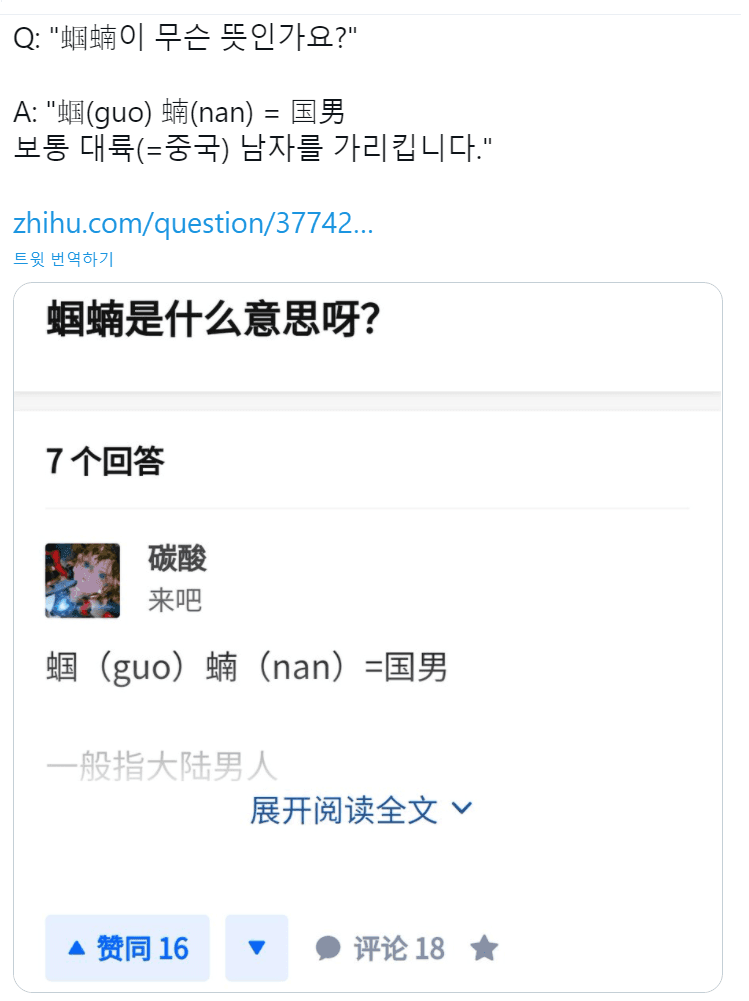 궈난충 = 중국 남자를 '벌레남자' 라고 부르기 시작