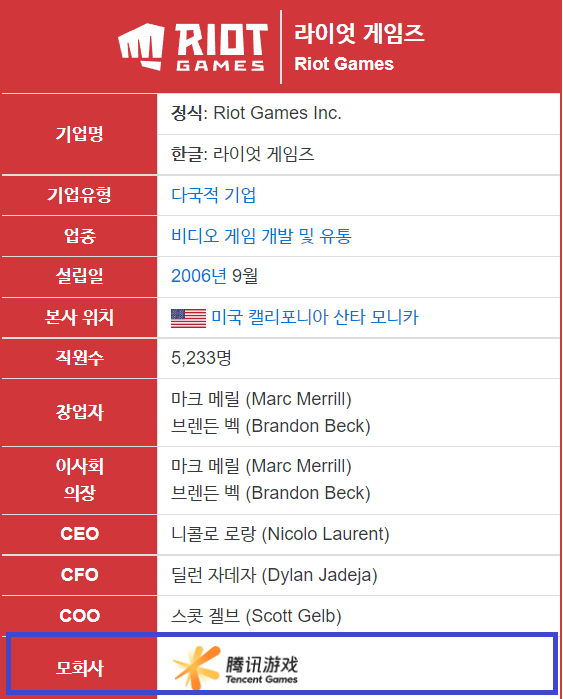 텐센트가 100% 지분 완전 소유하는 라이엇 게임즈 좋아하는 이대남이