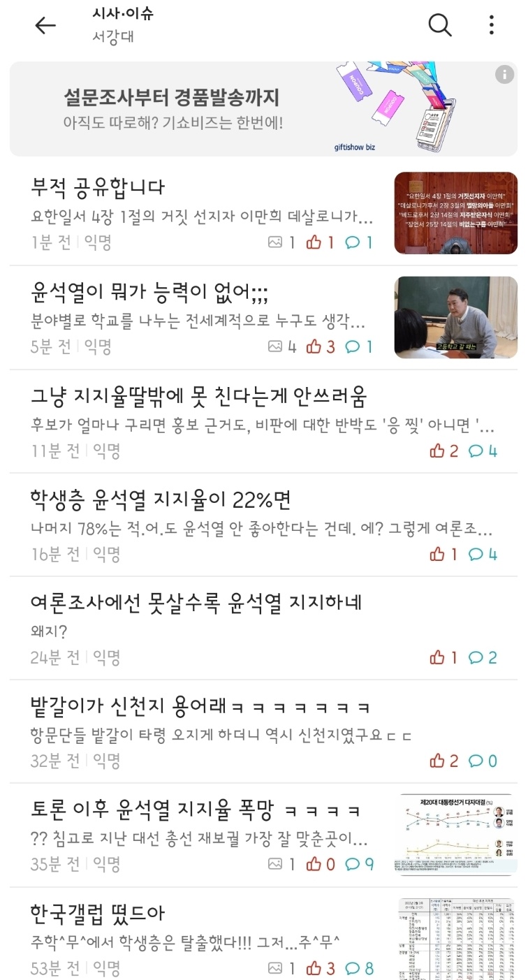 서강대 학생들이 볼거라고 생각하고 저러는거아냐 ㅋㅋㅋ 웃기는놈들이네