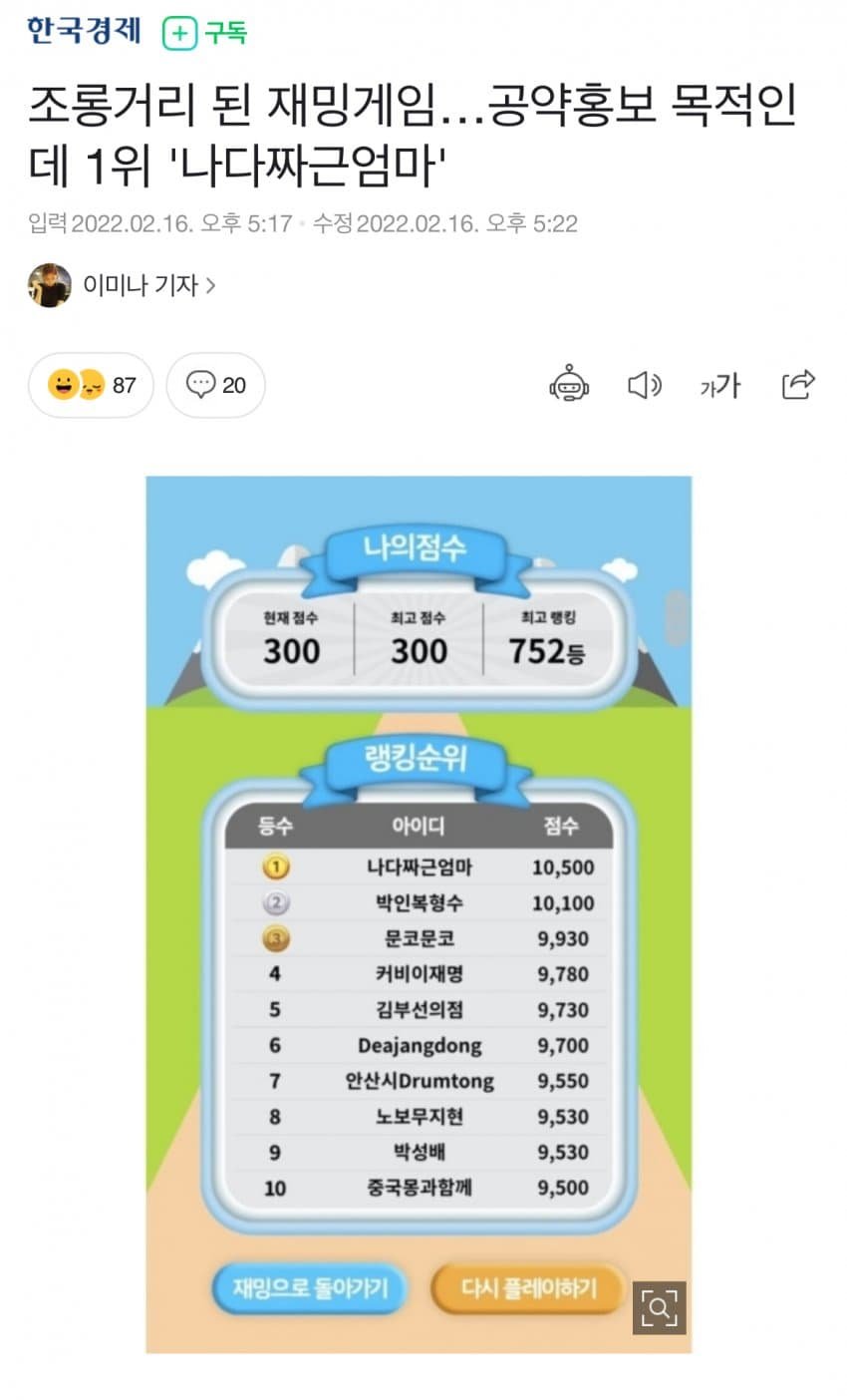랭킹으로 세로드립 ㅆㅅㅌㅊ…