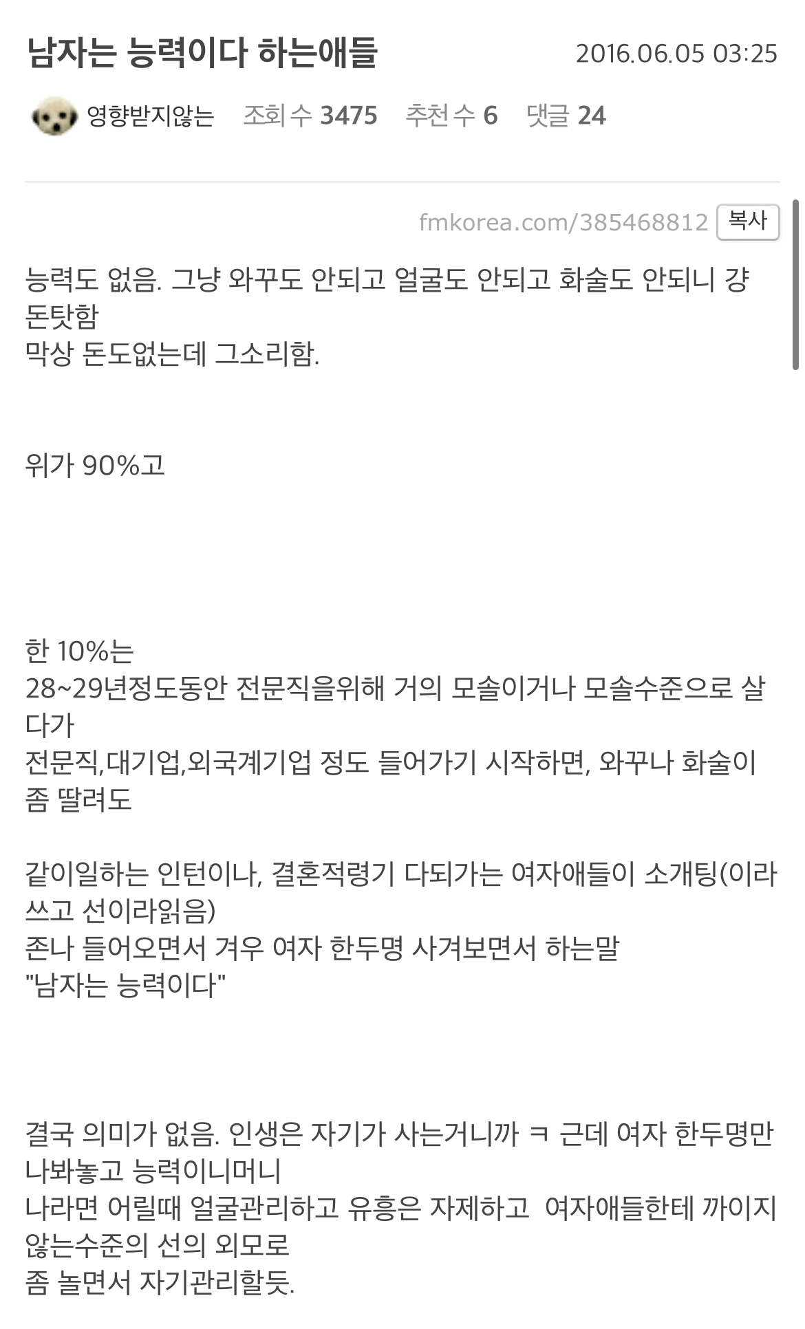 어쩌다 이 글 봤는데 이새끼 설거지론을 5년전부터 완벽하게 이해하고있었노 ㅋㅋ