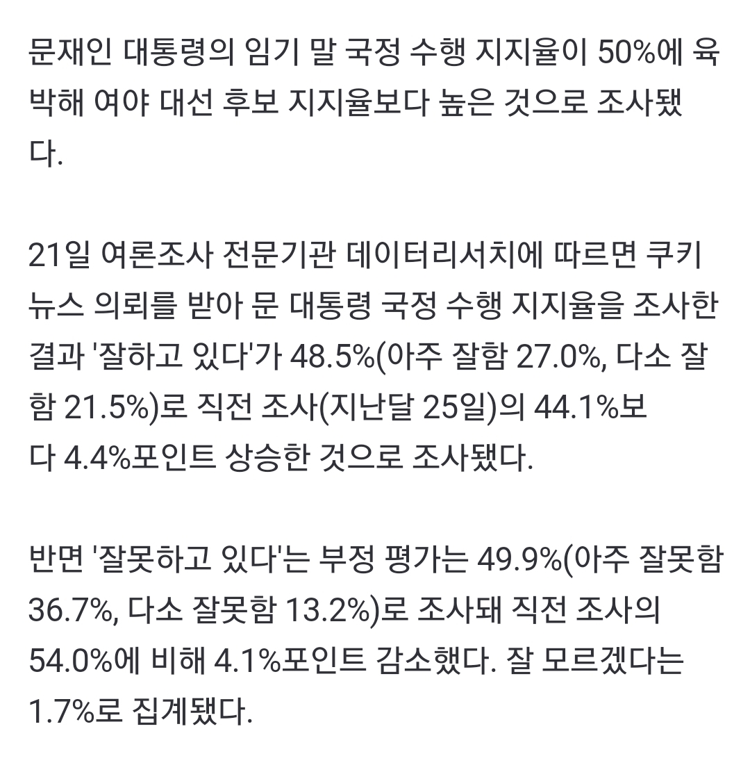 임기 2달 남았는데 역대 대통령 중에 유일하게 레임덕없이 지지율 50% ㄷㄷㄷ