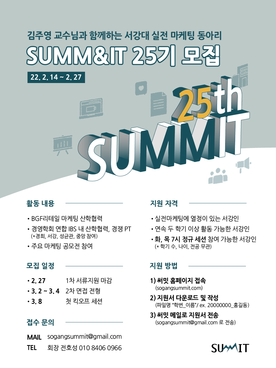 [D-1] 서강대 유일 실전마케팅 동아리 ▶ SUMM&IT 25기 모집 ◀