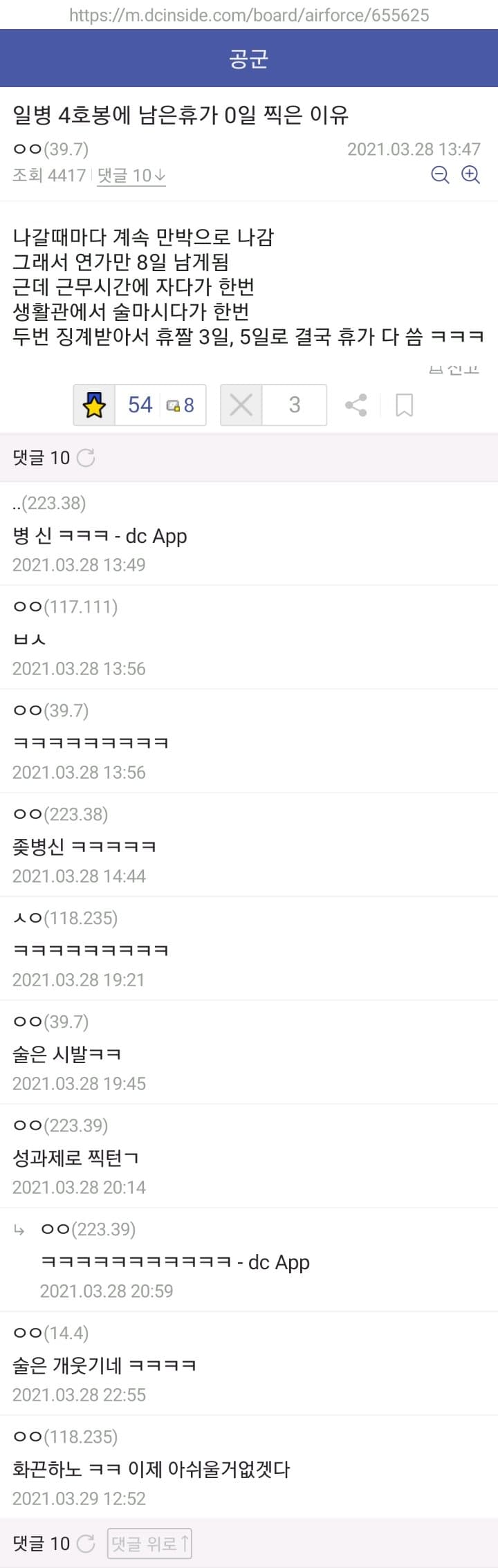 ㅋㅋㅋㅋ 휴가 짤리고 공군갤에서 념글간게 엊그제 같은데