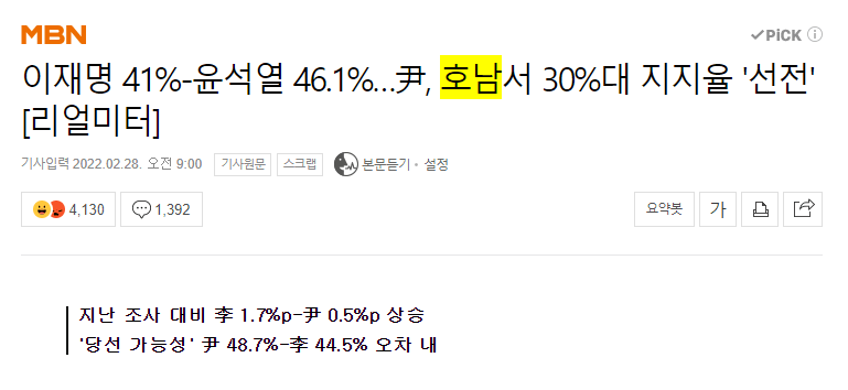 전라도여도 이대남들은 더이상 민주당에 매몰되지 않은 상태라 저럴 수 있음.