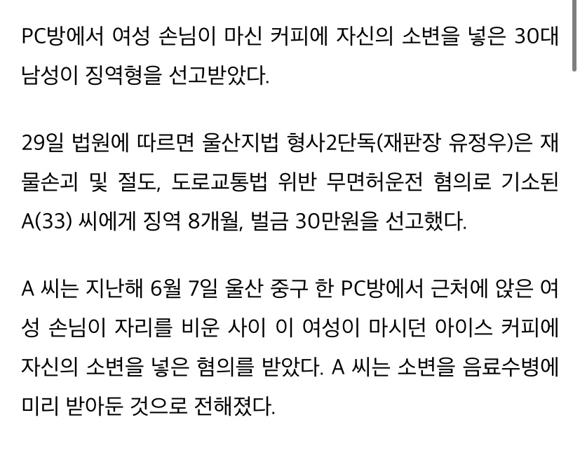 이거 오줌 아니라고 우기면 어케됨? 그래도 뭐 넣은게 확인되니까 처벌받으려나??
